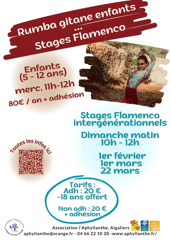 Anaïs anime des cours réguliers de flamenco et rumba gitane pour adultes et enfants dès 5 ans, mais également des stages ado /adultes.