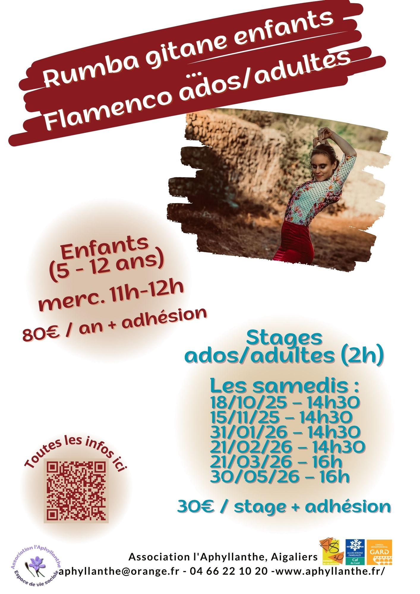 Anaïs anime des cours réguliers de flamenco et rumba gitane pour adultes et enfants dès 5 ans, mais également des stages ado /adultes.